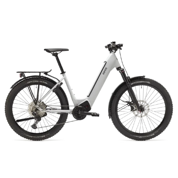 Design Low Step em alumínio facilita acesso mas mantém rigidez para offroad. Três tamanhos S (44cm), M (49cm), L (54cm) cobrem estaturas 1.55m a 1.95m. Três cores mate exclusivas: Hock Grey, Olive Green, Light Nude. Pintura em pó resistente mantém estética impecável. Suporta até 190kg – a bicicleta elétrica mais robusta da gama BEEQ.